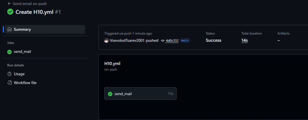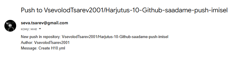pushˇime seda kõikke githubˇisse ja avame meie komiidi ja näeme seda, et sõnum on meie email´isse saatud