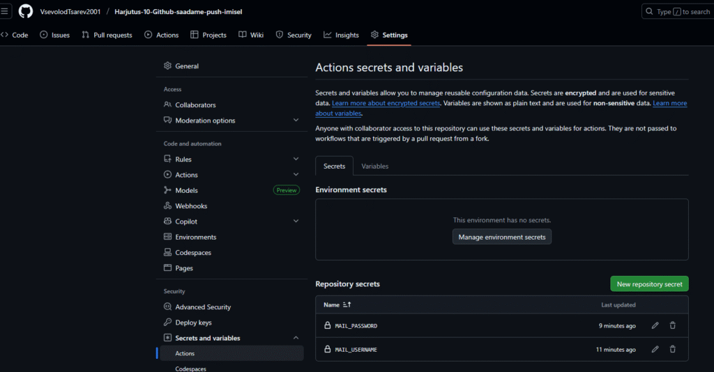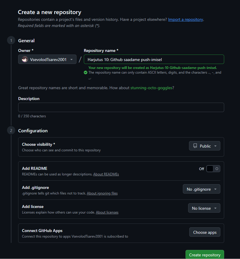 Avame meie Github ja teeme uue reposaadame push-imisel