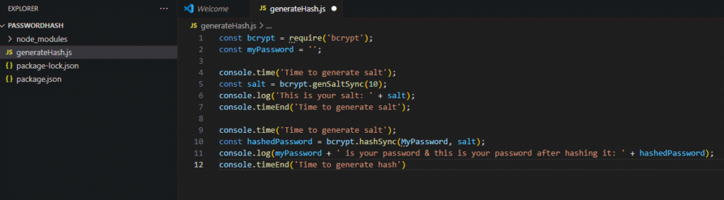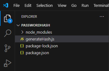 Tee uus fail nimega generateHash.js