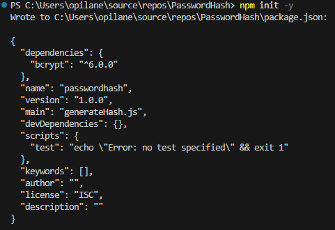 Kui siin me oleme näinud viga me peame teha npm inin -y ja pärast paigalda bcrypt
