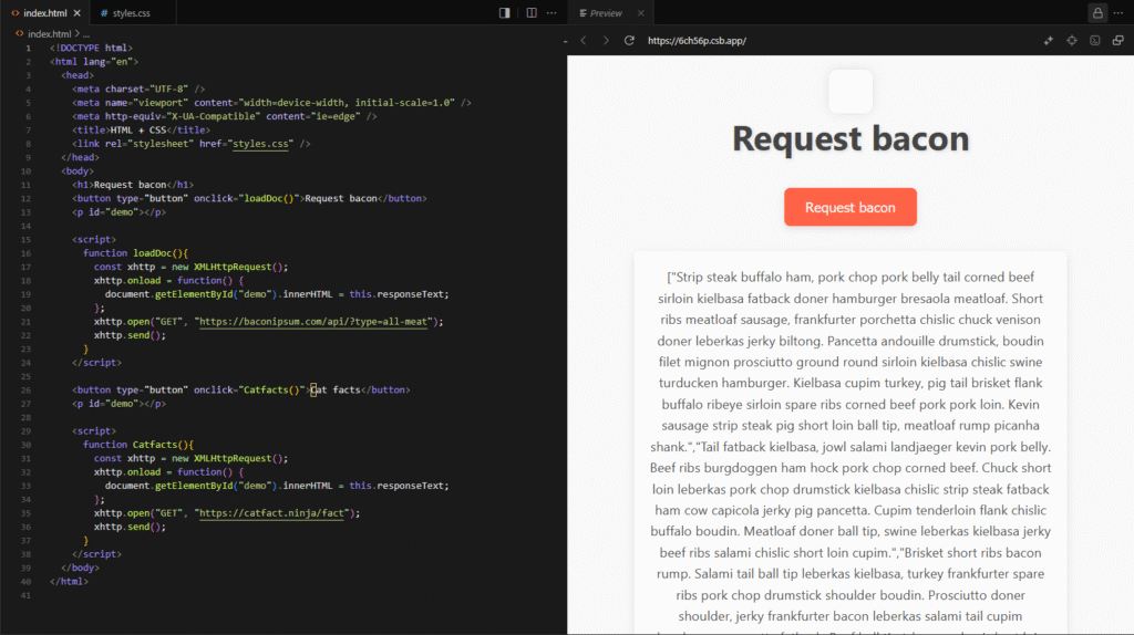 xhttp.open("GET", "https://baconipsum.com/api/?type=all-meat");