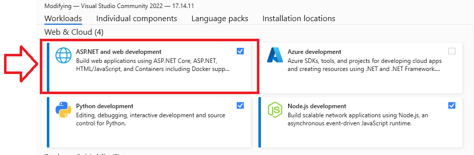 Oluline on aga võtta ASP.NET ja veebiarenduse lisa:
