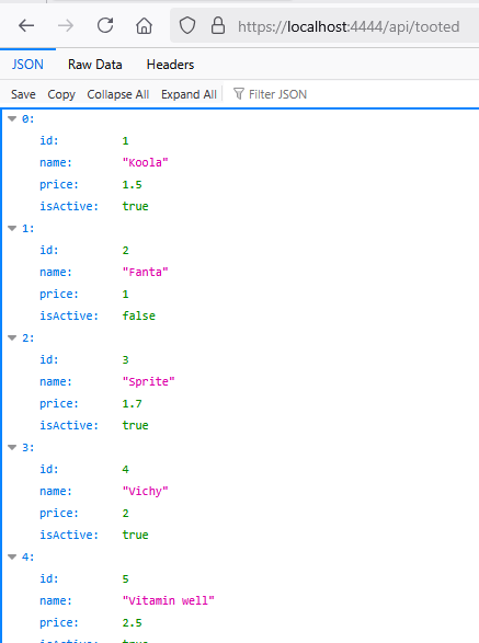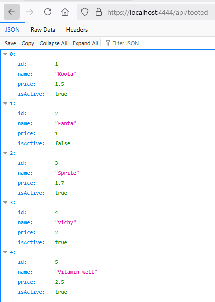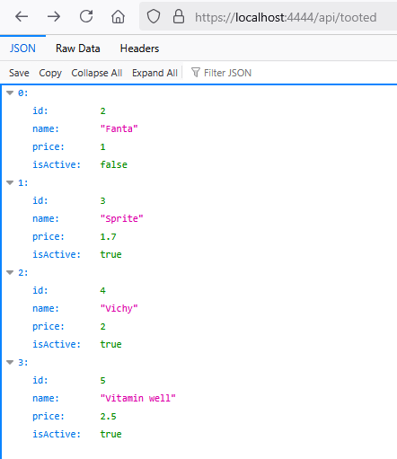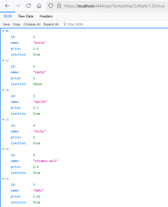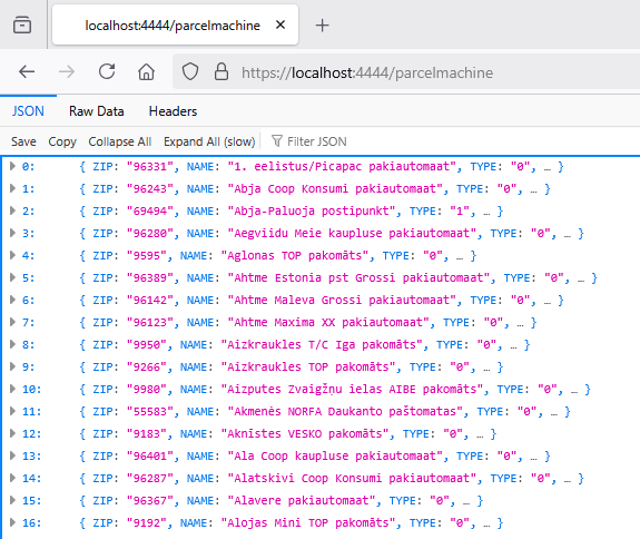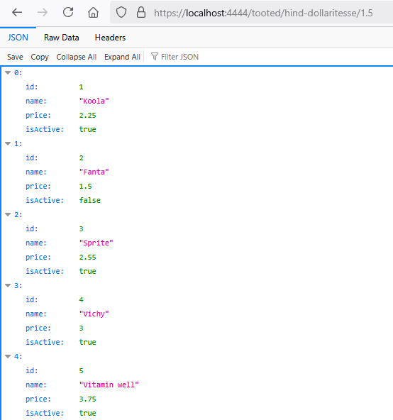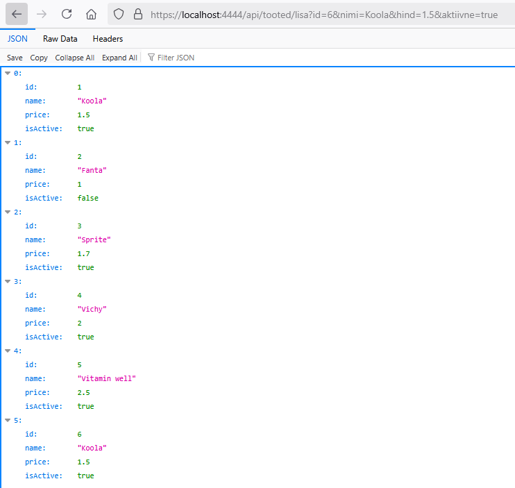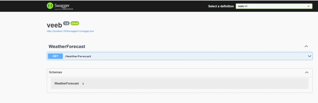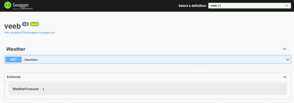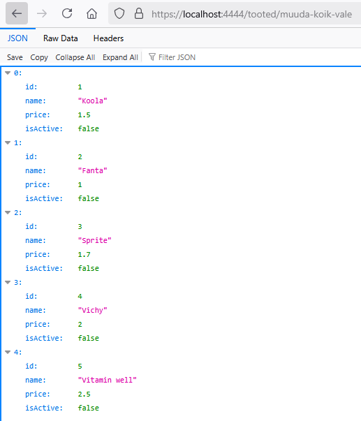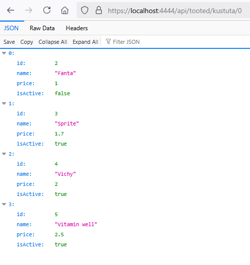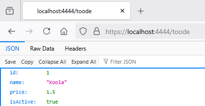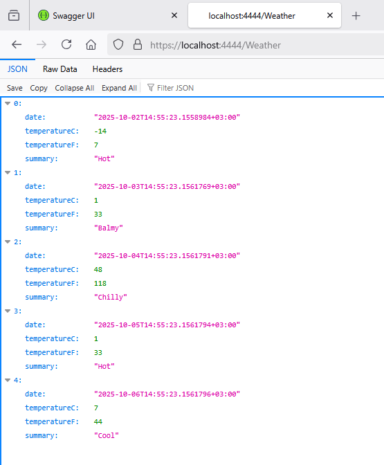 Ning nüüd on kontrolleri otspunkt kättesaadav URL-lt: https://localhost:4444/Weather