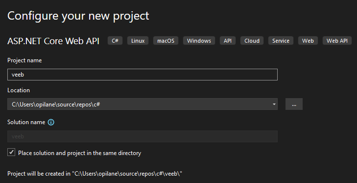 Port on kirja pandud “Properties” kaustas olevas failis “launchSettings.json”, profiles -> projekti_nimi -> applicationUrl taga. Soovi korral võid seda vahetada. Lihtsuse huvides vahetan selle ära: