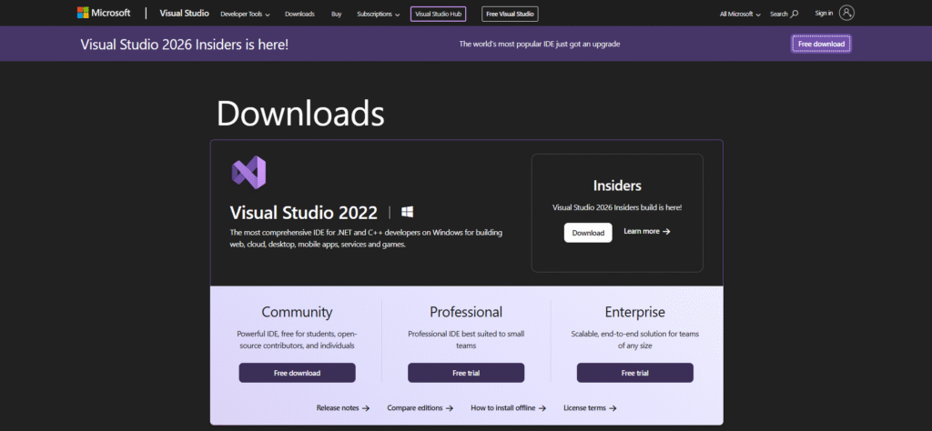 Lae alla Visual Studio programm järgmiselt lehelt: https://visualstudio.microsoft.com/downloads/