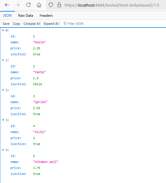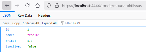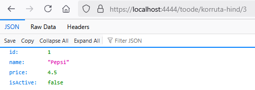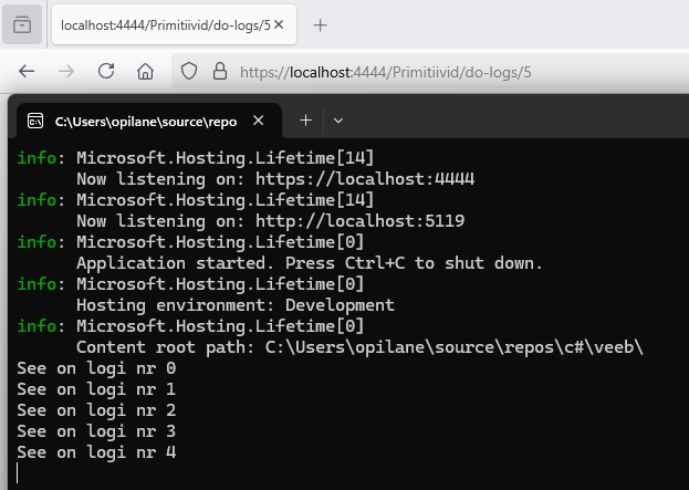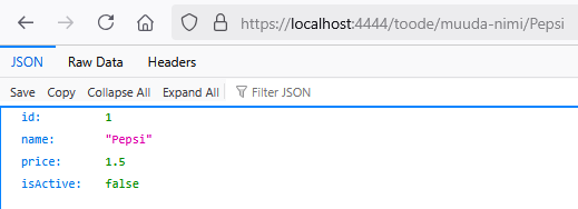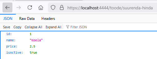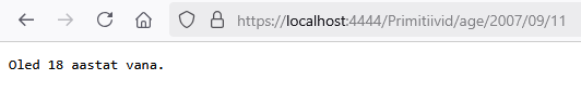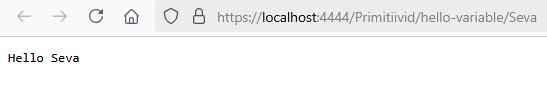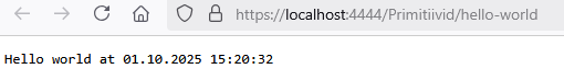 Pane rakendus käima, ava brauser ning mine aadressile “https://localhost:4444/Primitiivid/hello-world” . Brauser peab sulle tagastama selle, mille oled lisanud “return” järele – kirje koos kuupäevaga.