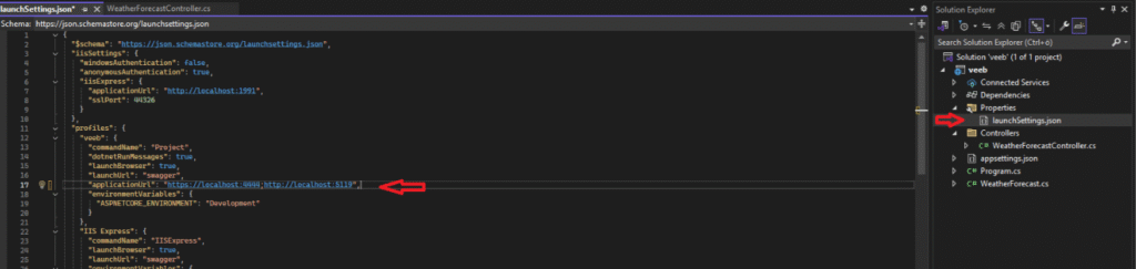 “applicationUrl”: “https://localhost:4444;http://localhost:5119“,