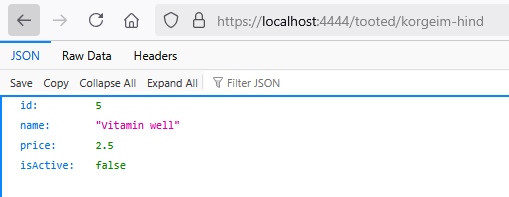 Pane tähele, et pead kasutama kontrolleri nime API otspunktis – kui määrasid otspunktiks “hi”, siis pead seda välja kutsuma “localhost:PORT/kontrolleri_nimi/hi”