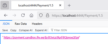 API otspunkt on kättesaadav “https://localhost:4444/Payment/1.5“