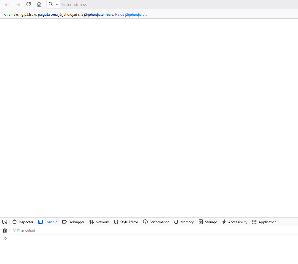 2. Ava konsool ning kirjuta konsoolile sessionStorage ning vajuta ENTER. Näed, et Session Storage on tühi.