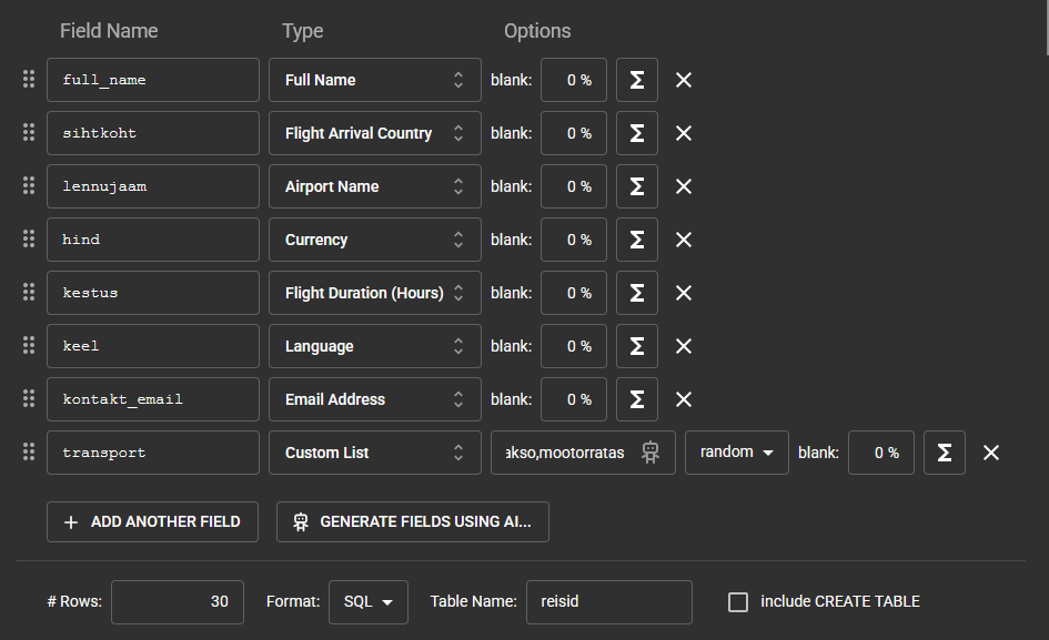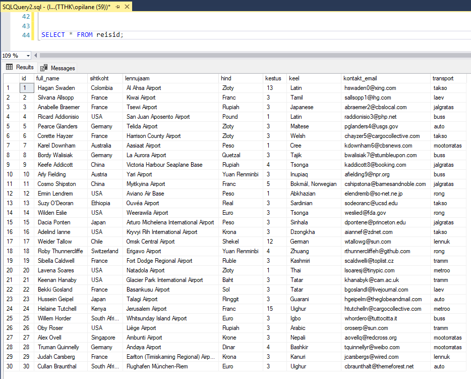 - Filtreeri ja kuva ainult need reisid, mille transport sisaldab lennureisi.