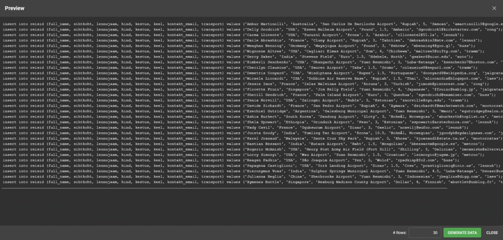 Pärast me pututame nuppu “preview” ja pärast kopeerime kõik andmeid mis on genereritud:
